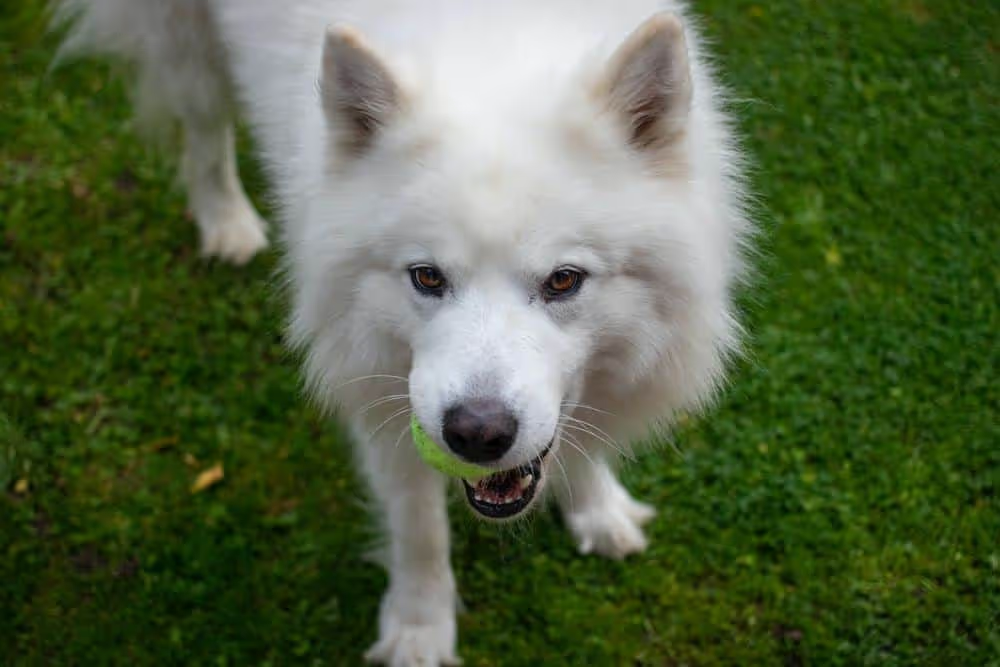 The Samoyed has a luxurious double-layered coat, consisting of a slightly rough outer coat and a softer, fluffier undercoat. Daily brushing with a brush or metal comb is essential for this breed to prevent mats and tangles. Samoyeds tend to shed a lot, especially in the spring and autumn months, so you may need to brush more often in those seasons.